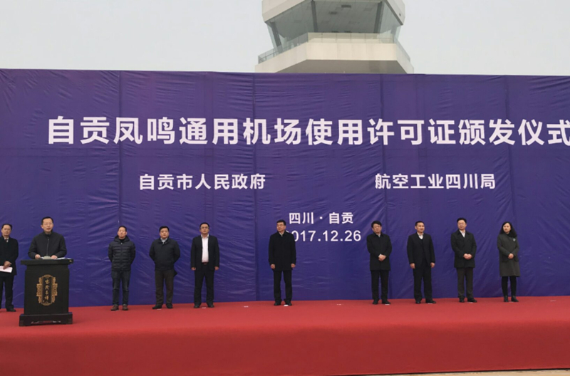 2017年12月26日上午9点30分,自贡凤鸣通用机场正式获得民航西南地区管理局颁发的通用机场使用许可证,这标志着四川省第一个通用机场项目,正式投入使用。